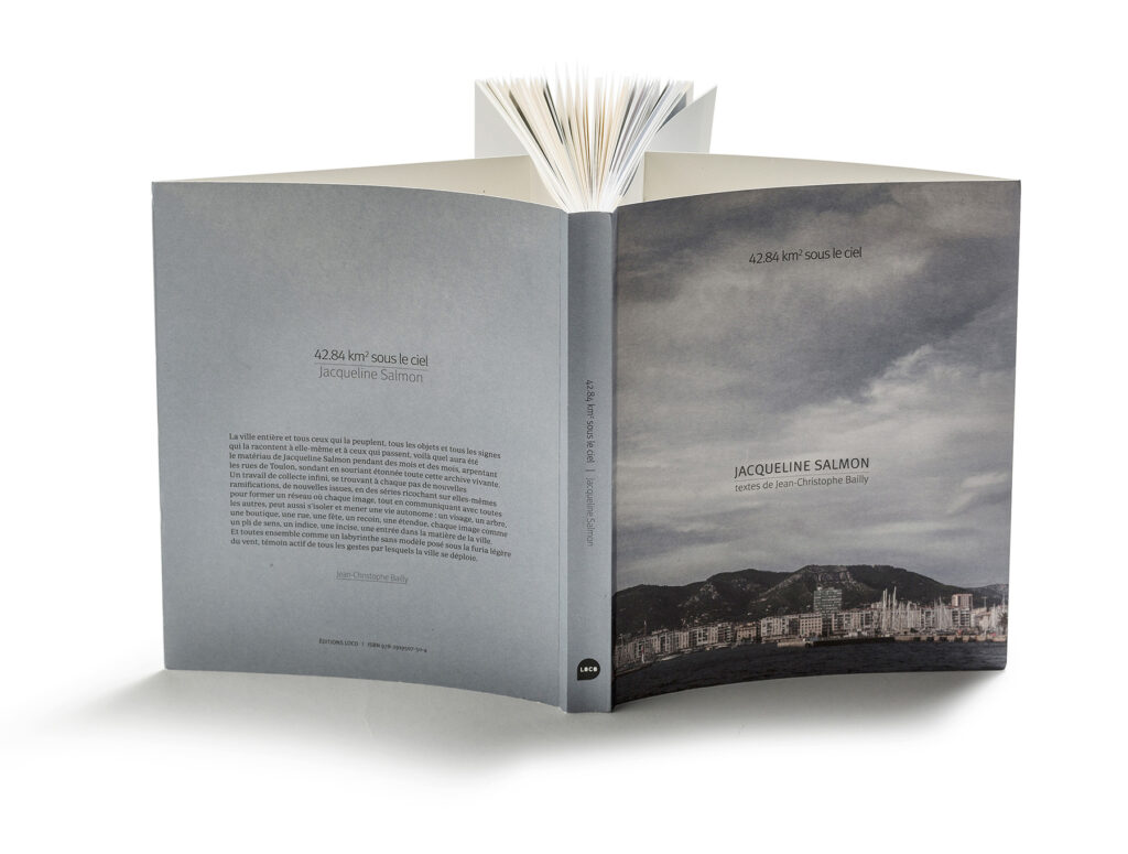 Photographer Jacqueline Salmon has always found in cities and their architecture material for developing photographic reflections. Thus, beneath the enigmatic title 42.84 km2 Under the Sky lies the ambitious project of attempting to describe a city. This project took shape over several years in the city of Toulon: the 42.84 km2 in question representing the city’s surface area. How to represent a city is the question Jacqueline Salmon posed. This book answers it by bringing together as many photographic essays as a city illustrates its diversity. This “miscellany” book therefore contains: