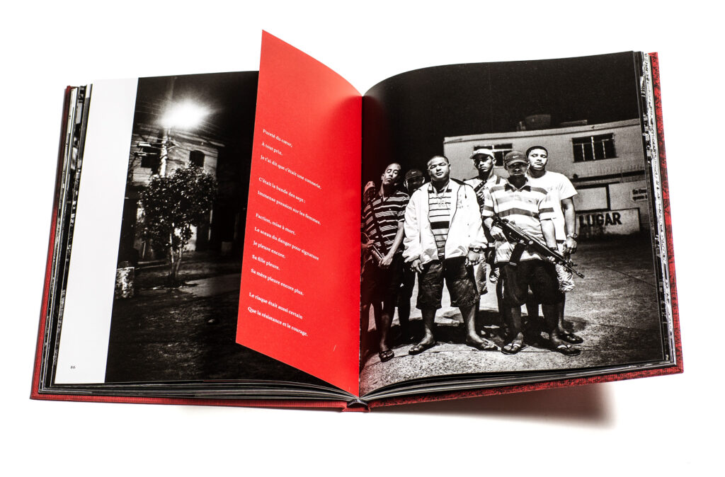 Viviane Salles’s politically engaged poems punctuate the book, inserted between the photos on colored paper notebooks.