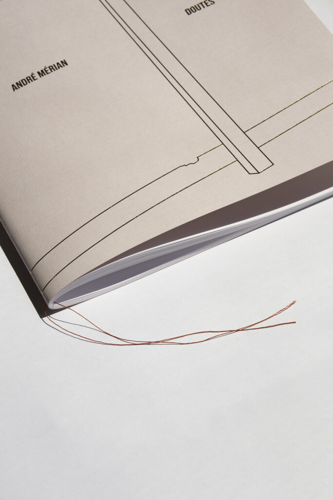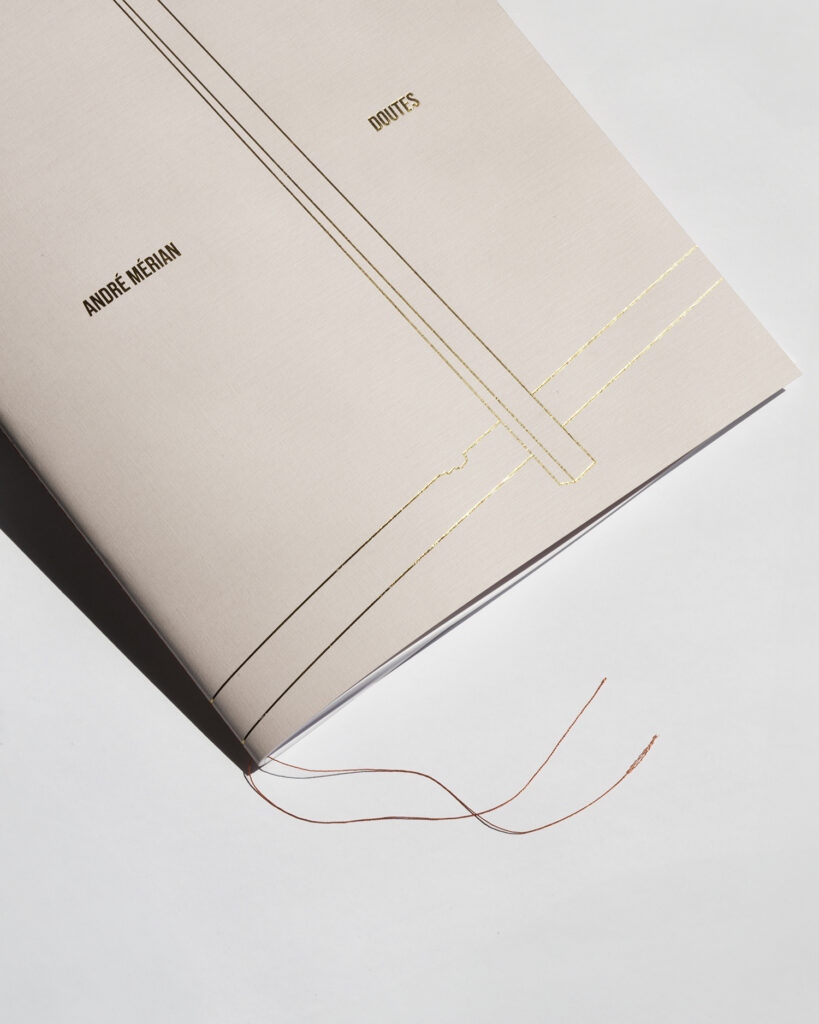 Doutes, 96 pages, 24×31,5 cm, about 45 four color reproductions, Arena White smooth 100g paper. Singer binding, hot stamping, limited printing.