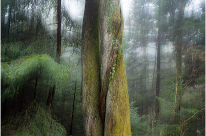 Vibrant landscapes, dazzling light, and superimpositions of archival documents and natural elements created in situ form the fabric of a personal photographic style that captures both the “spirit of the place” and the way in which people today have learned to live with this forest steeped in history.