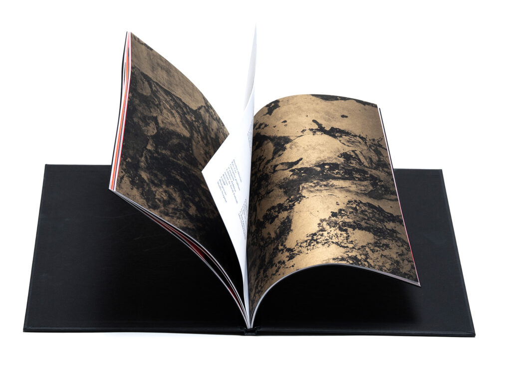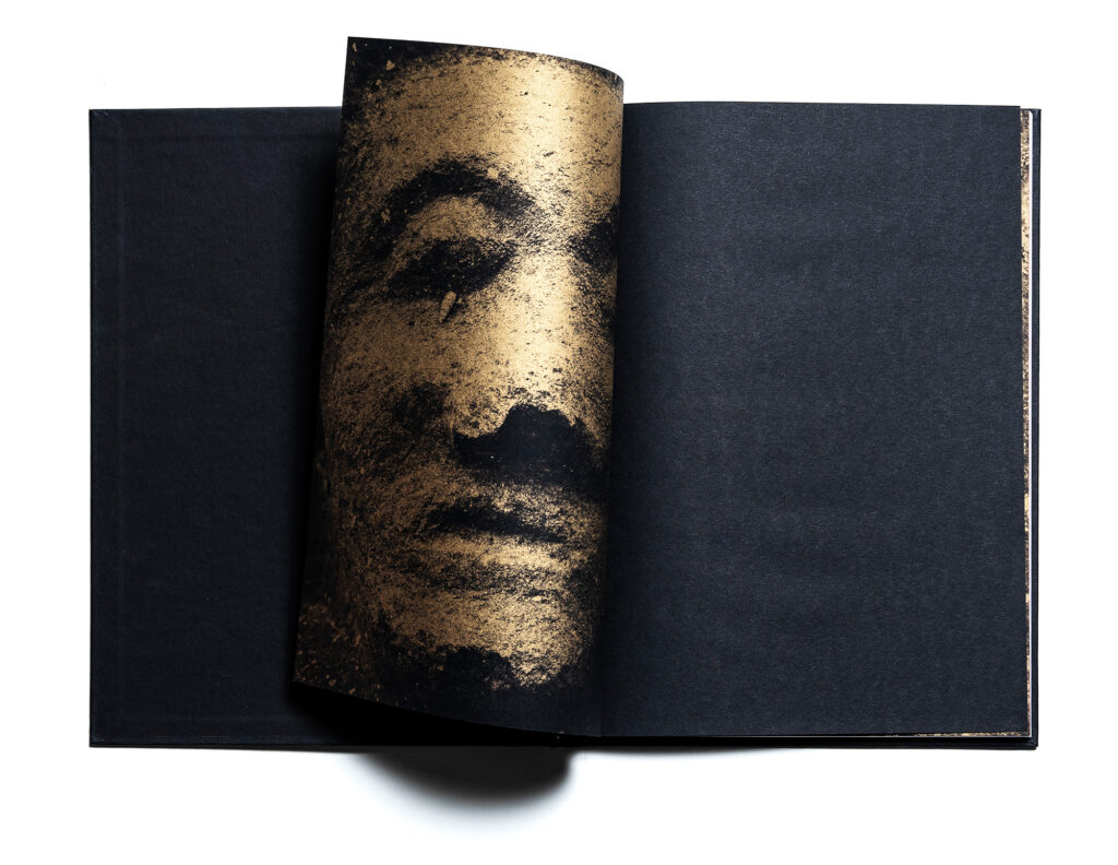 This is why, to this idea of an archaic image, the artist wanted to associate images of female statues found in the calvaries of Finistère dating from the 16th and 17th centuries, an opulent period thanks to the linen trade. Treated in the book with a gold print on black paper, opening and closing the work, they also evoke the origins of Western representation in Byzantine icons.