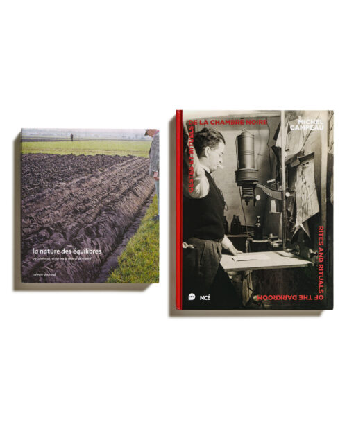 La Nature des équilibres de Sylvain Gouraud La Nature des équilibres est un récit construit autour d’une enquête photographique que Sylvain Gouraud a mené durant une dizaine d’année dans les milieux agricoles. 20×23 cm, 296 pages, environ 150 reproductions en quadrichromie, couverture brochée à la suisse + jaquette Gestes et Rituels de la chambre noire de Michel Campeau Depuis de nombreuses années, Michel Campeau traque dans l’immensité d’une production d’images mondialisée, les tirages photographiques amateurs ou de professionnels qui vont nourrir les différentes collections qu’il a établies. 22 x 27 cm, 244 pages, environ 250 reproductions en quadrichromie, couverture reliée plein papier |